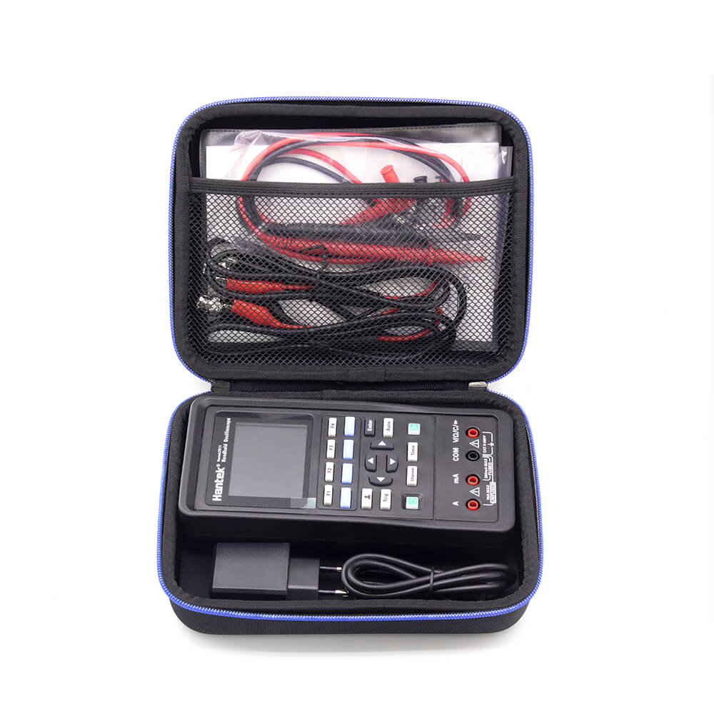 Осциллограф портативный Hantek 2D72 3-в-1 (2 канала, 70 МГц, осциллограф, мультиметр и генератор сигналов) - удобный и недорогой измерительный прибор с функциональным генератором и стандартным набором функций. Читабельный дисплей информативен, а большой клавиатурный блок не вызывает трудностей при работе с прибором. Возможность подключения к ПК позволяет рассматривать вариант прошивки и доработки устройства по своему усмотрению. Специальная подставка предназначена для установки устройства в удобном для пользователя положении. Комплект предусматривает 4 типа щупов, СЗУ с проводом и инструкцию пользователя. Фирменная сумка органайзер обеспечивает удобство транспортировки.