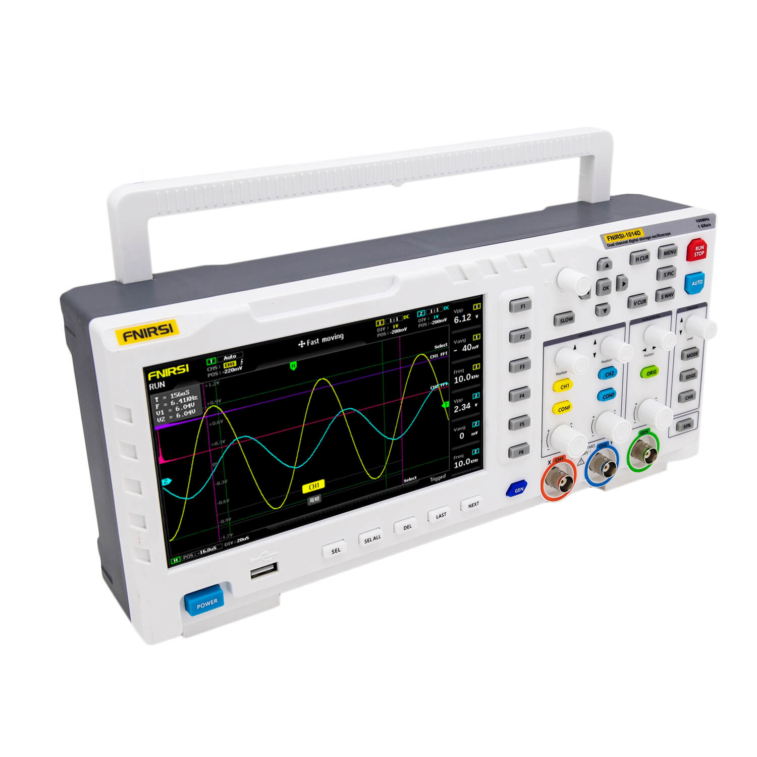Осциллограф fnirsi 1014d приобрел для настройки и ремонта радиолюбительской кВ-аппаратуры. Полоса пропускания здесь большая, около 100 мгц, синосиудальный сигнал четкий, можно сохранять результаты замеров, удобно. Сам прибор небольшой, портативный, в квартире много места не занимает. В общем, всем доволен.